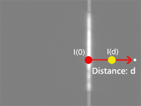 This system utilizes light from the visible to infrared light range, which has comparatively high transmittance in the human body. When infrared slit light is irradiated on the skin surface and the surrounding area is photographed with an area camera, it is possible to detect light including deeper information (light that permeates the body and then leaks out again from the surface) as the distance from the slit light increases.