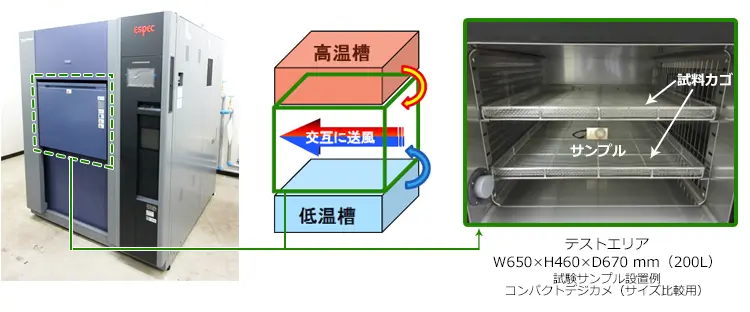 | 試験機 | 冷熱衝撃装置1号機(200℃仕様) | 冷熱衝撃装置2号機(300℃仕様) | |
